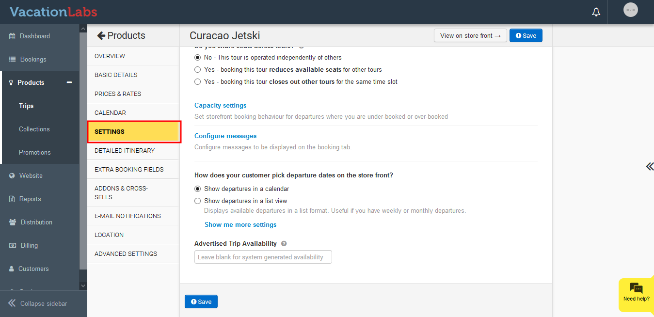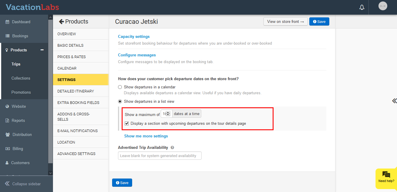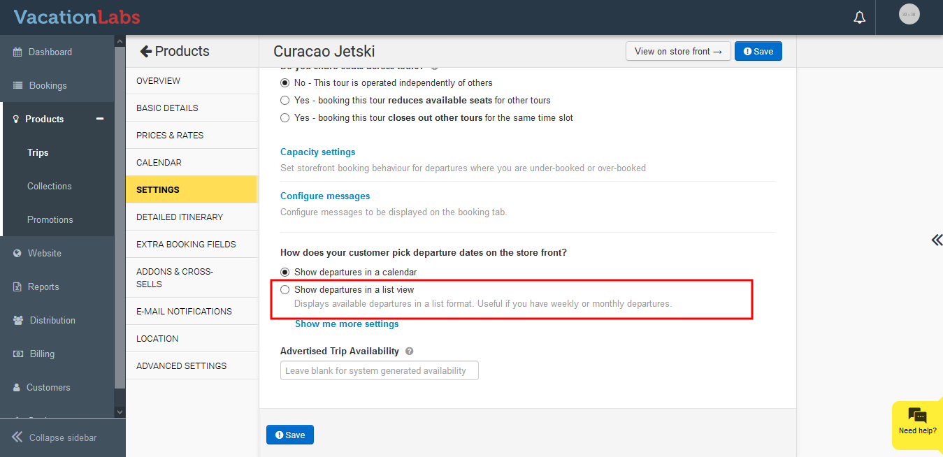 - Under “How does your customer pick departure dates on the storefront?”, select “Show departures in a list view”.
