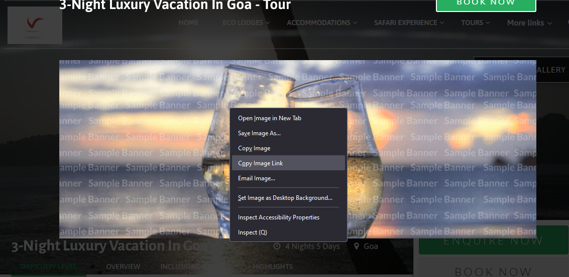 After uploading all the images, please navigate to the storefront of that tour page. When you click on the Banner Image, you will see the photo gallery where all the images are uploaded. Now, open the required image that needs to be added to the itinerary section, right-click on it, and select “Copy Image Link.”