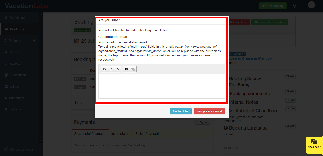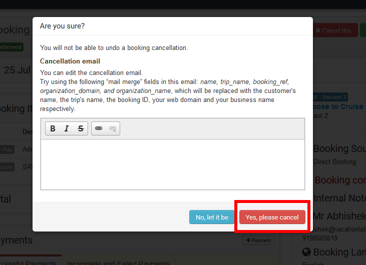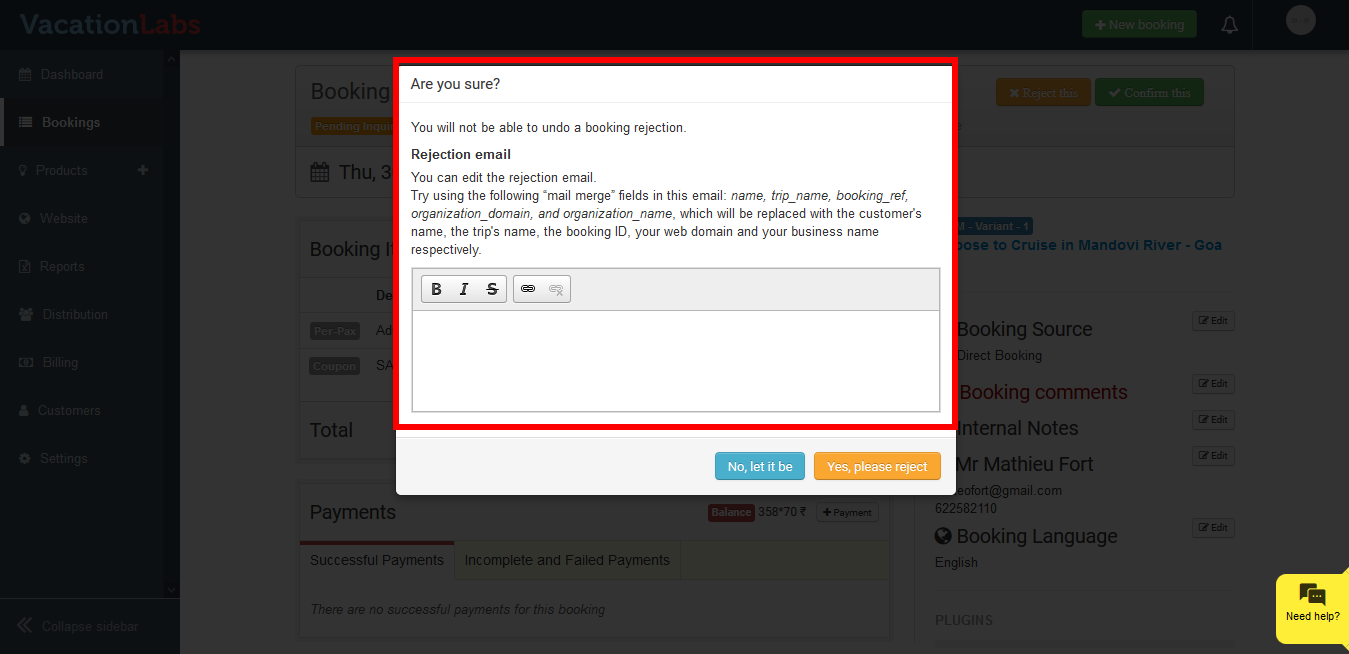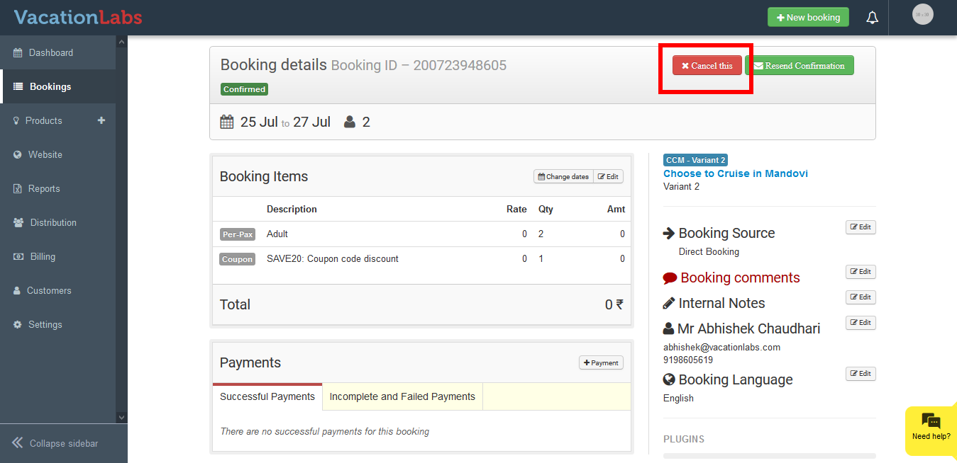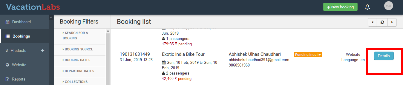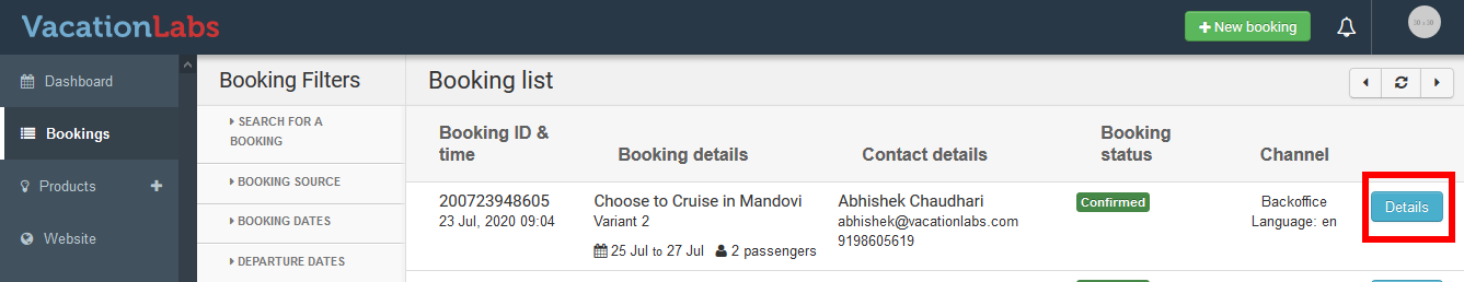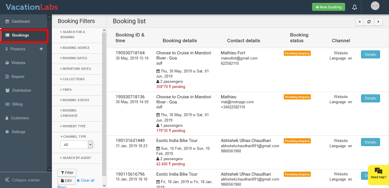 Vacation Labs allows you to have full control on the bookings and cancel/reject the bookings with one single click if you want.
