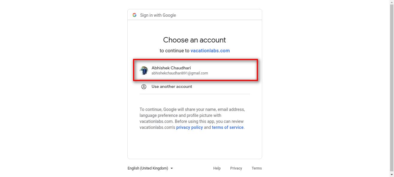 - Login into Vacation Labs