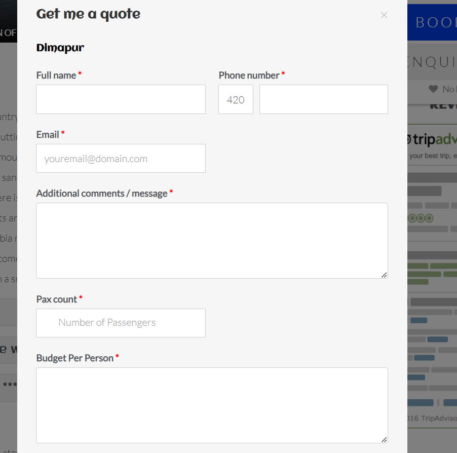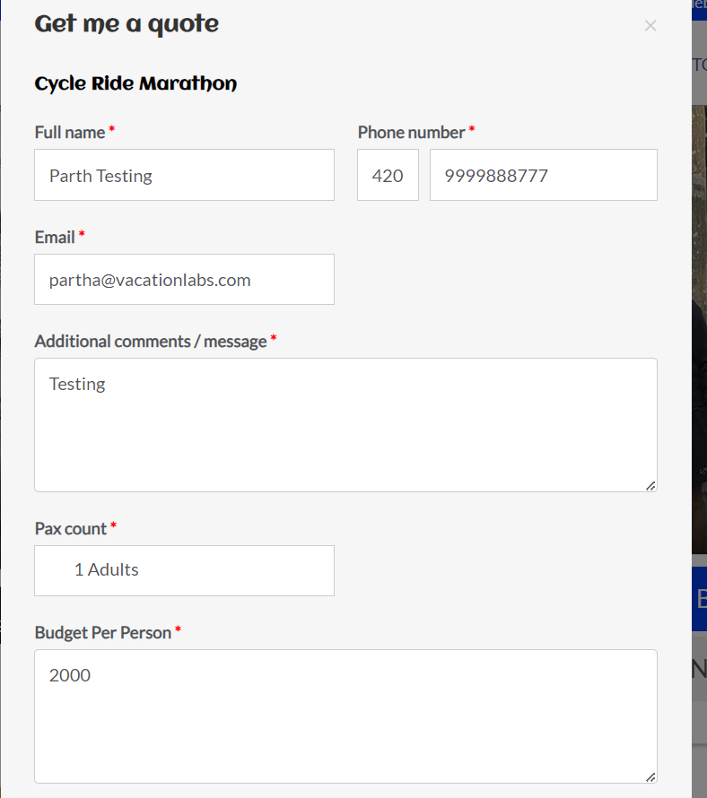1. Open any trip page and click on Enquire Now and fill the details the Inquiry form (refer screenshot below) and click on Send Enquiry