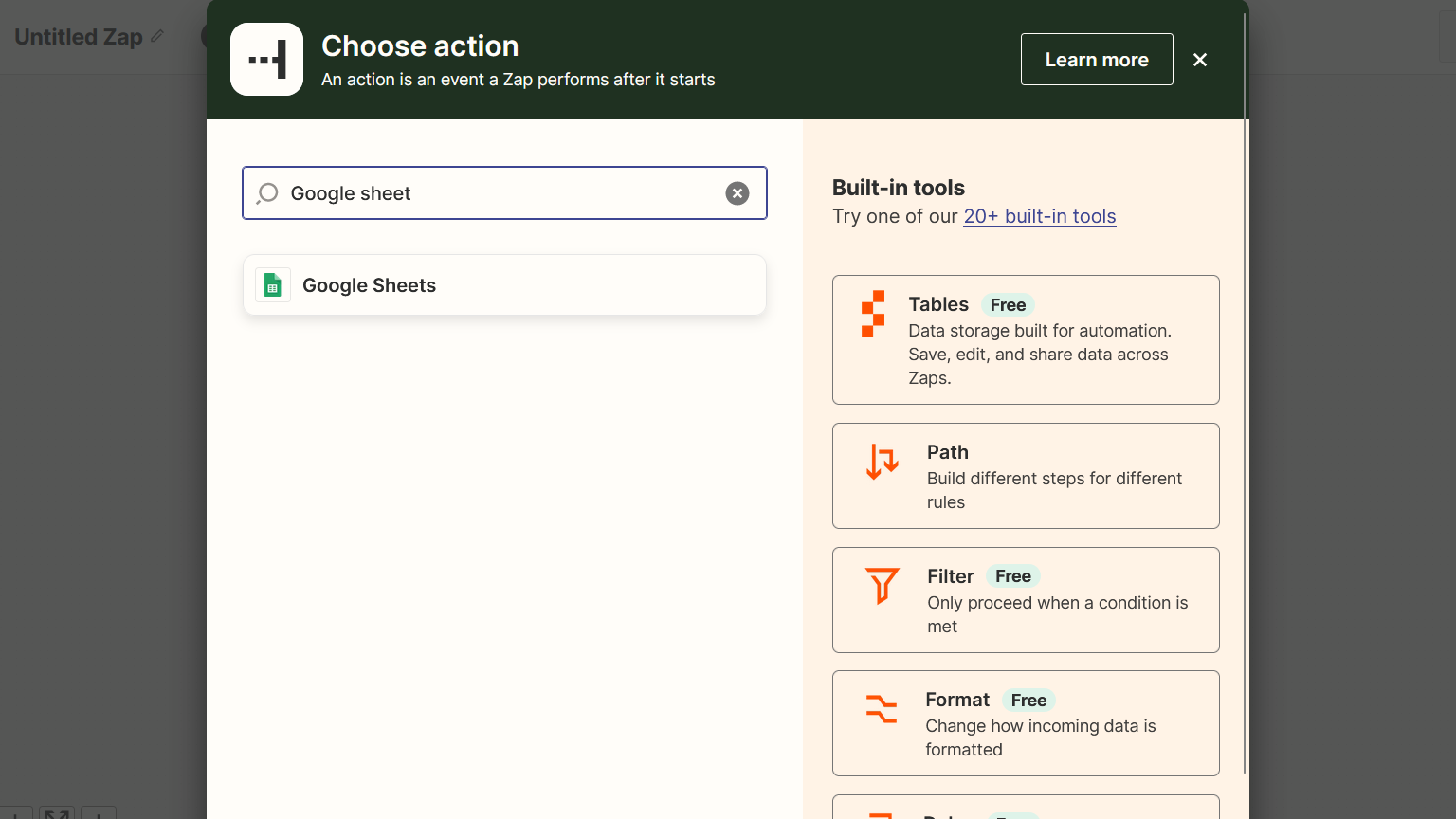 Connecting Google Sheets as an Action in Zapier