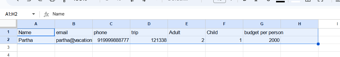 Please note: you will need to put the columns/rows header in the sheet beforehand so that Zapier can read it and then you can map data those columns easily, also please create separate headings for separate passenger categories such as Adult, child, couple etc.