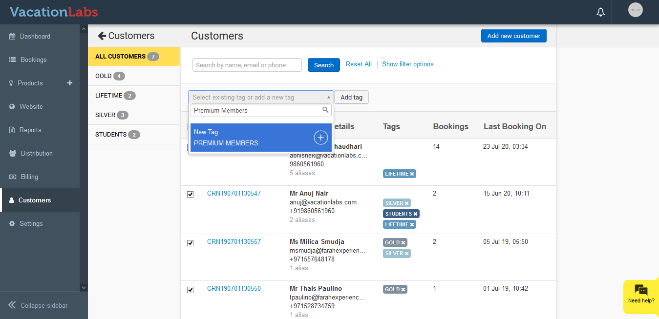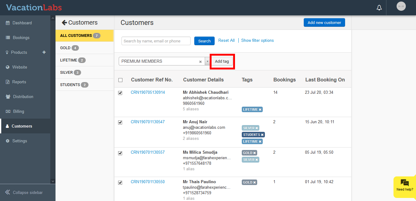 Once you have selected the required customers, give a name ( eg Premium Members) to the tag and click on +.