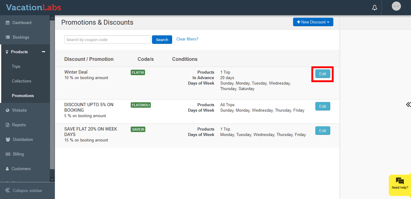 Edit the coupon