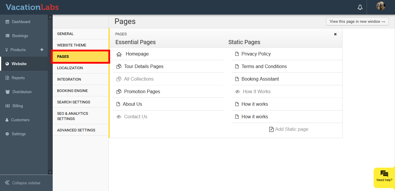 ** - Click on **Pages