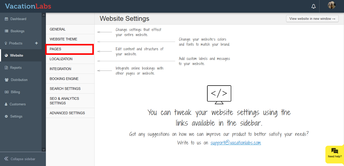 - Click on **Pages
