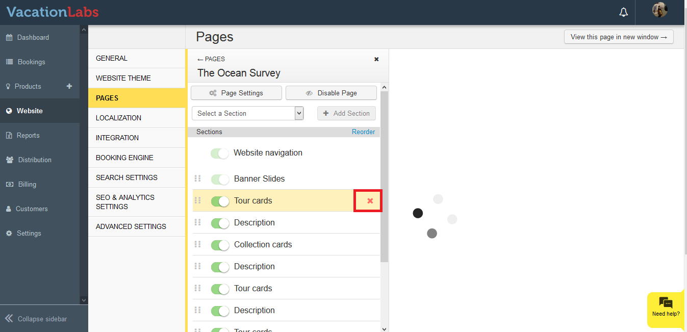 Sometimes you may want to remove an unwanted section ( eg Tour card section which contains irrelevant tours) from your website.