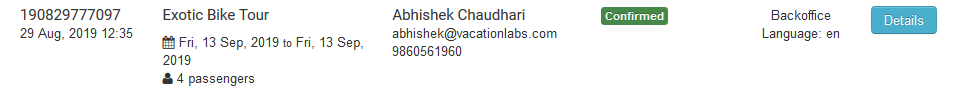 Once a Booking is recorded in the back-office it can be in either a Confirmed, Unconfirmed, Cancelled, Pending Inquiry, Rejected, Cart Abandoned. This states helps you get the overview of any customer booking quickly.