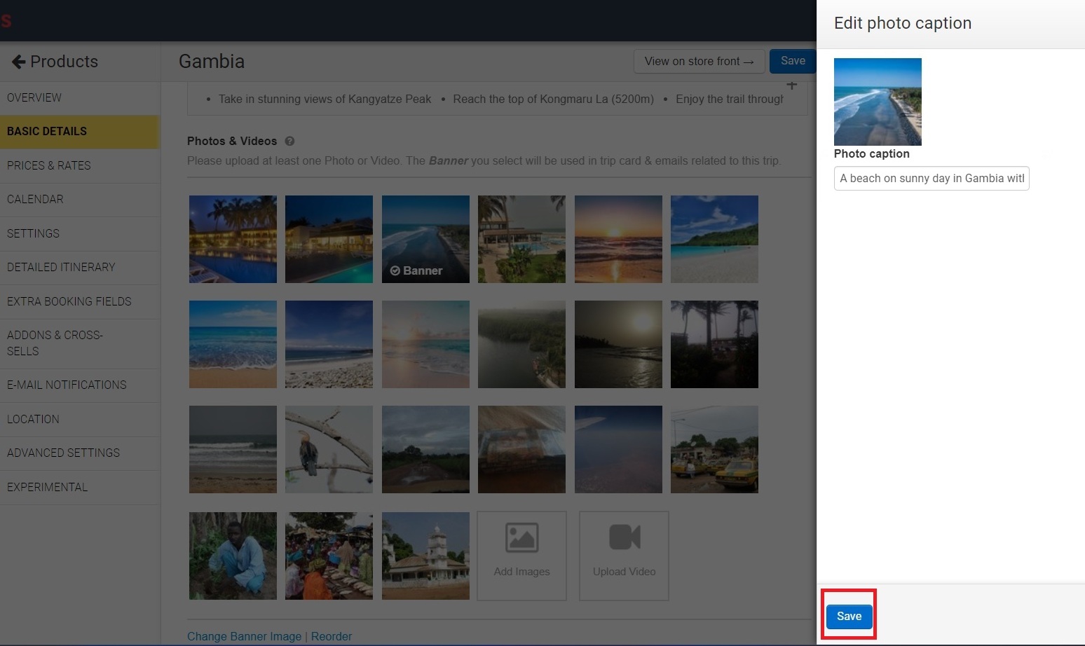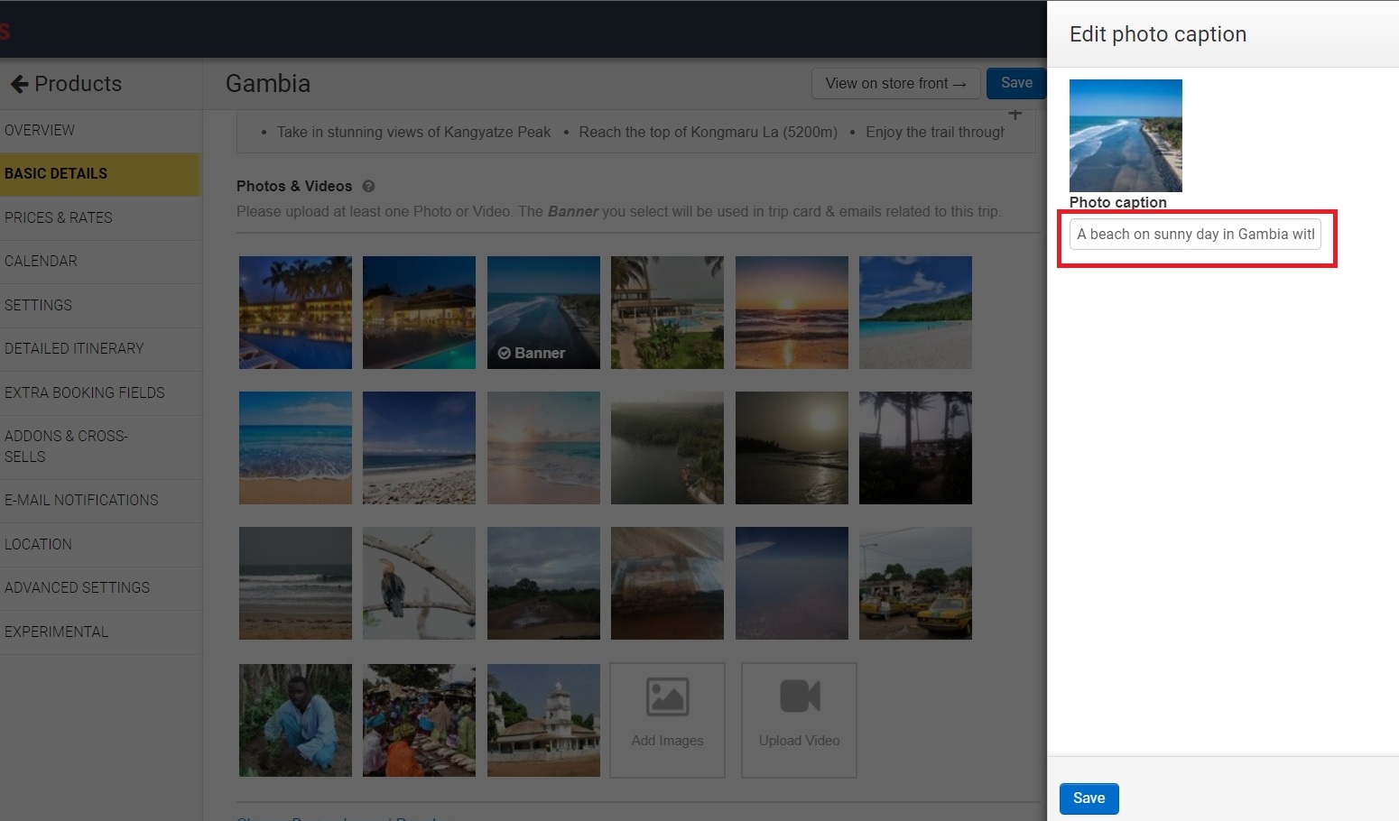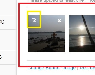 Navigate to the page in your BackOffice/Admin where the image is located (ex: trip, collections etc) . Once you find the image you want to edit, click on the Edit Description icon (a pencil icon) that appears when you hover over the image.