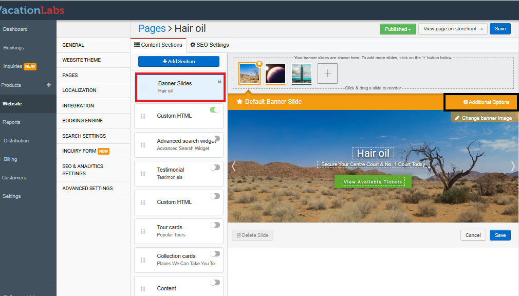 Inside the Banner Slide settings, look for a button called Additional Options. Click on it to reveal more configuration choices.