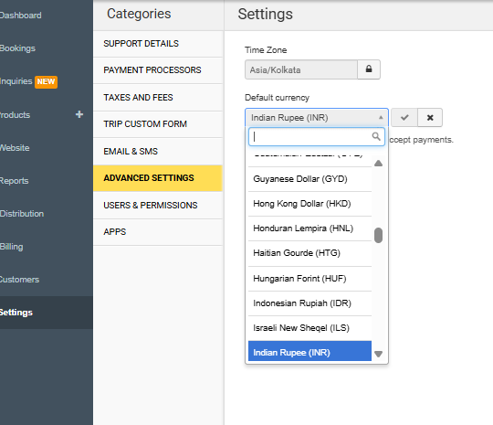 Important Note: Changing your default currency only affects new products. It does not convert existing booking values or payment amounts. Historical financial data will remain in the currency it was originally recorded in.