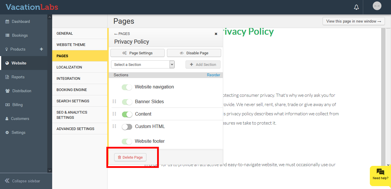 How to delete or disable a page on website