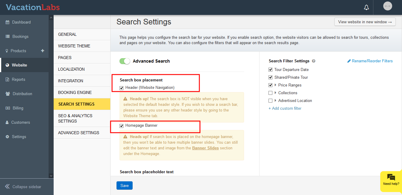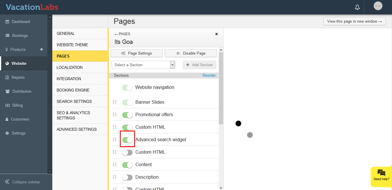 Click on the toggle button besides the Advanced Search Widget
