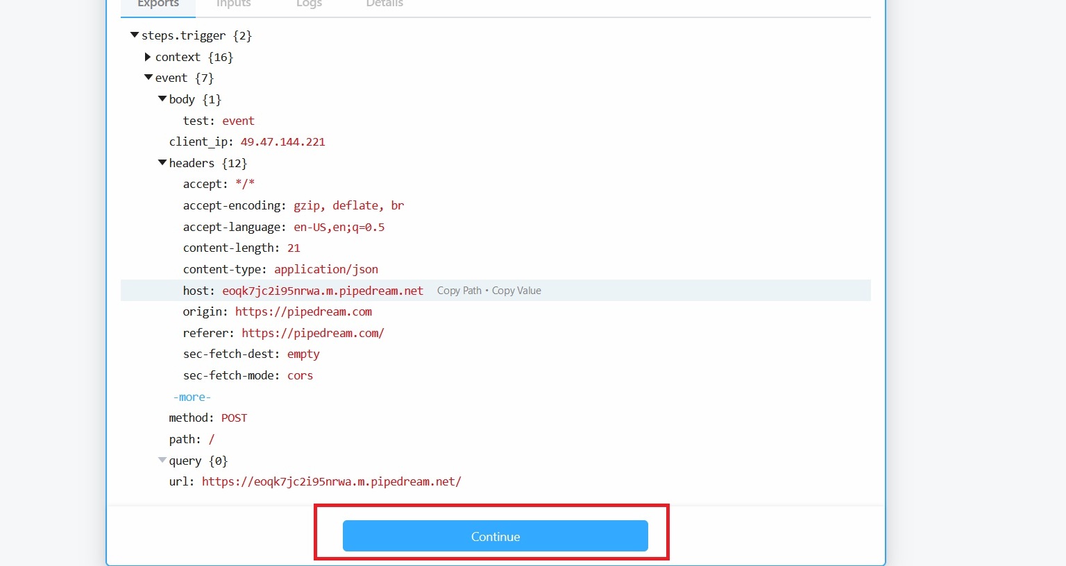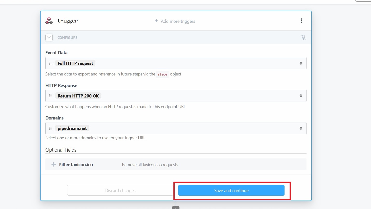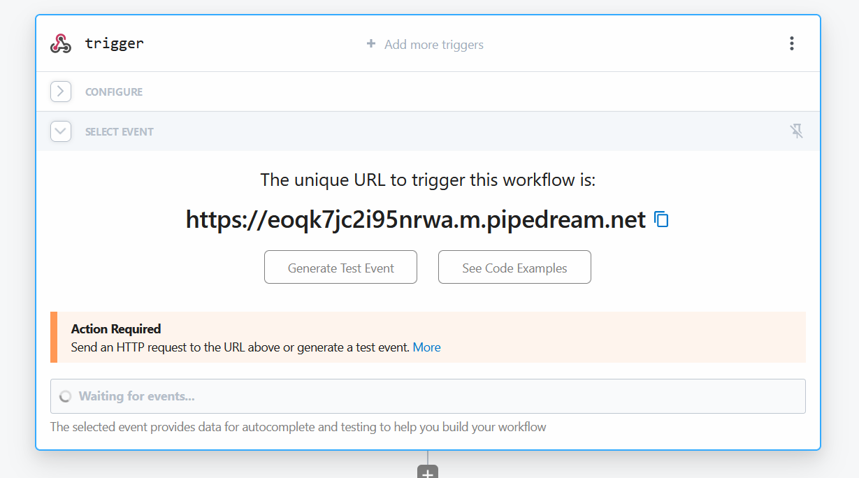 - Setting Webhook as trigger in Pipedream
