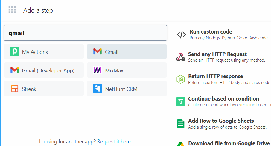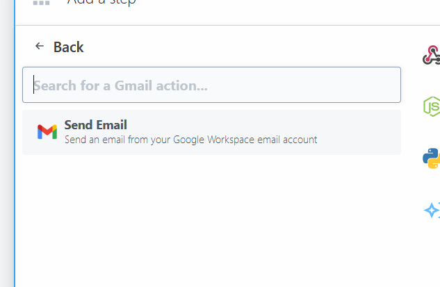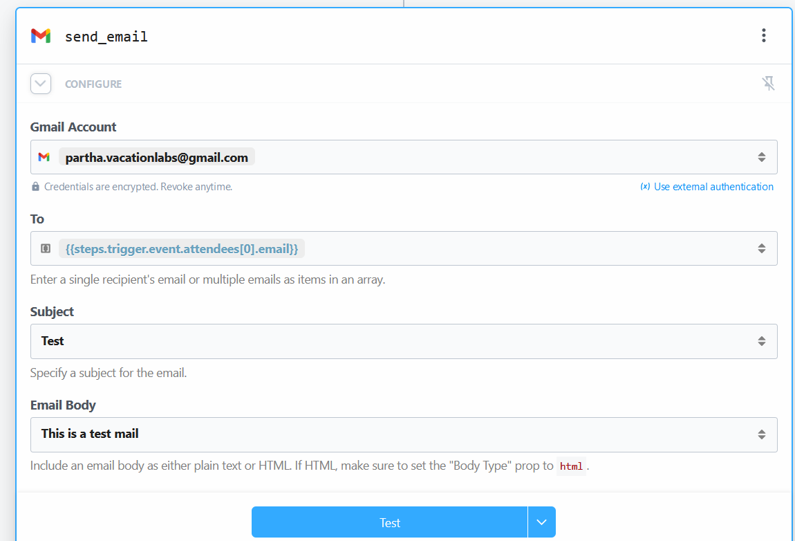 - Setting Gmail Mail function as the Action