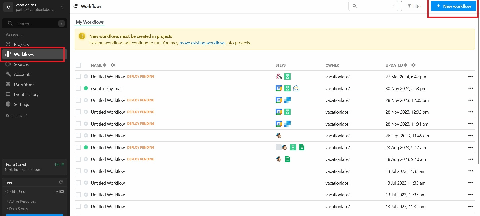 Click on Workflows and then on New Workflow (refer screenshot below)