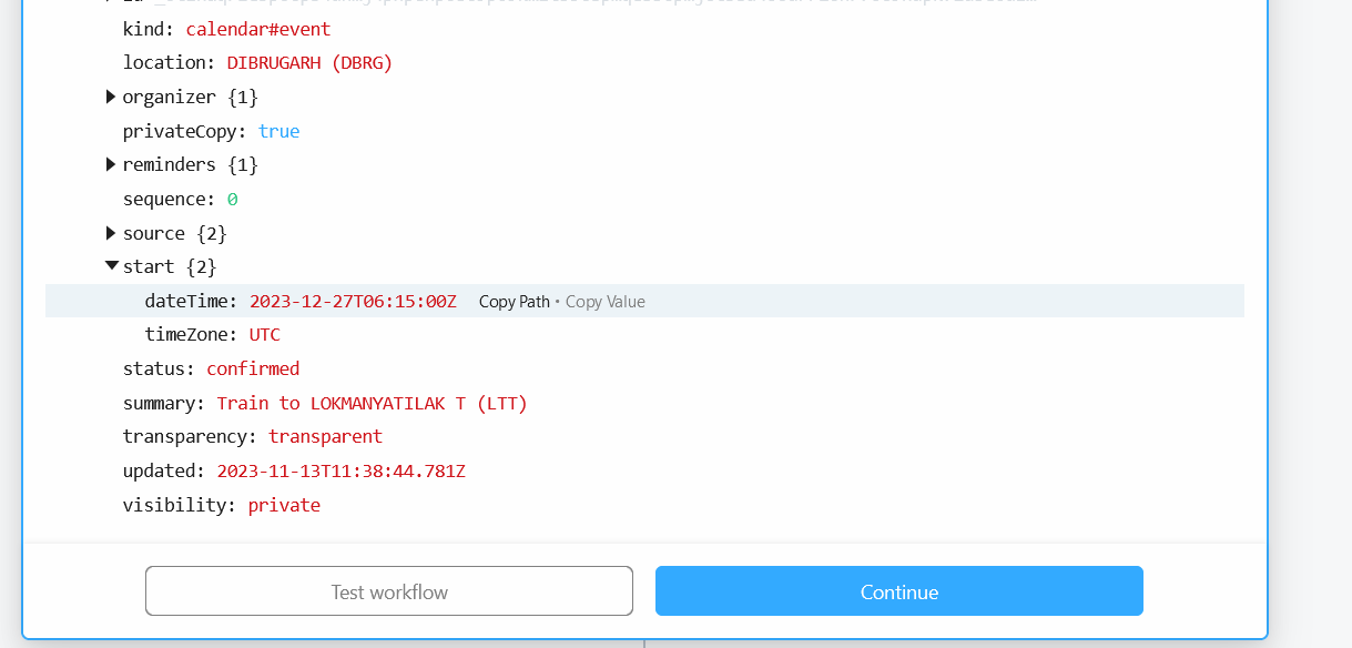 (new Date(steps.trigger.event.start.dateTime) - new Date()): This calculates the difference in milliseconds between the current date/time (new Date()) and the departure date (steps.trigger.event.start.dateTime).