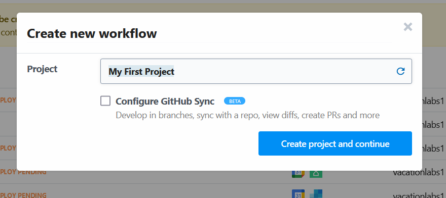 Give it a name and click on Create Project and Continue (refer screenshot below)