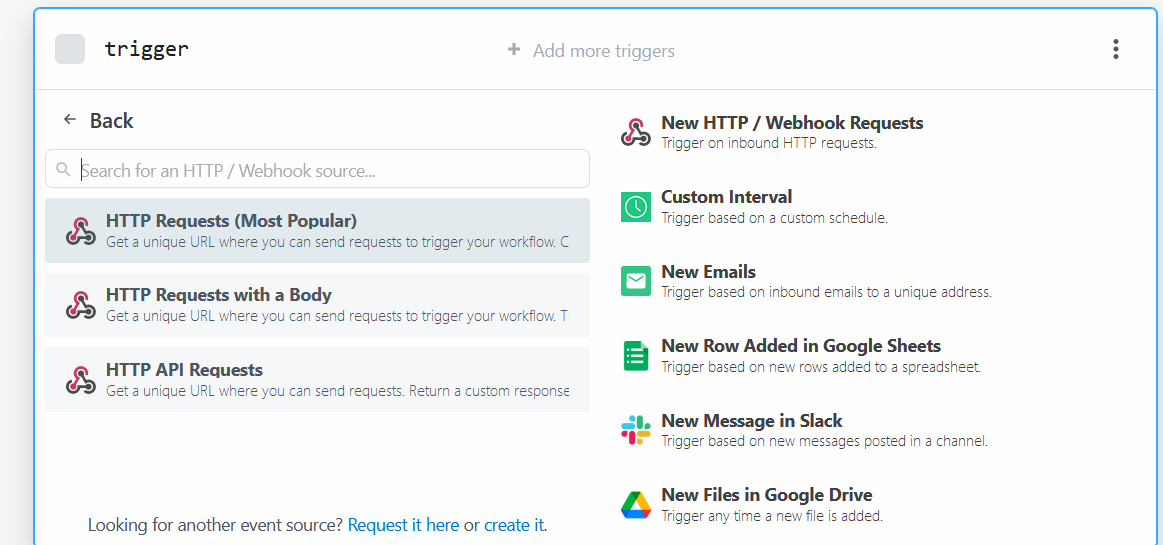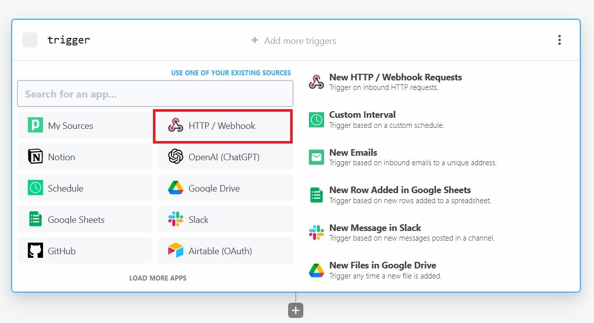 On the next page, pipedream will ask you to select a Trigger, click on Webhook (refer screenshot below)