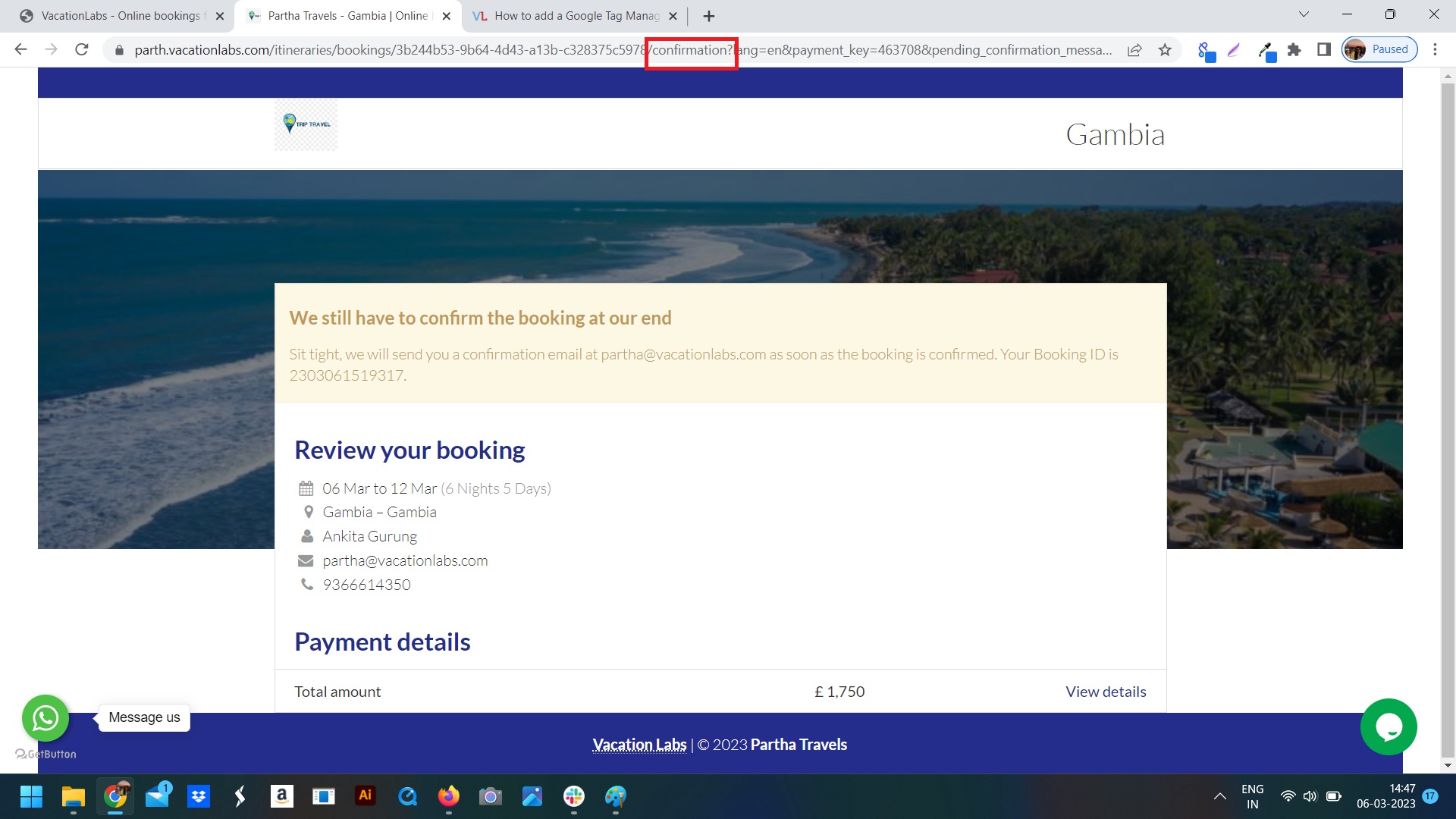 3. Adding a keyword. A keyword is a word which is unique to a particular type of page. Such as for a confirmation page the URL contains the word CONFIRMATION which is a word unique to the confirmation pages only. Refer screenshot below