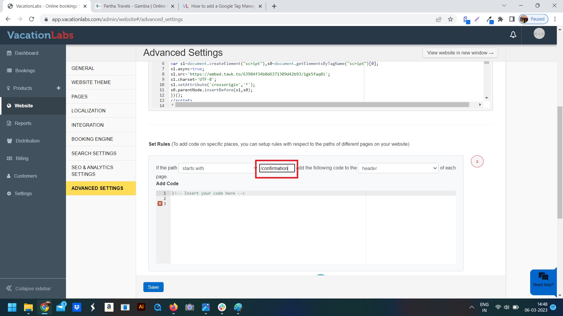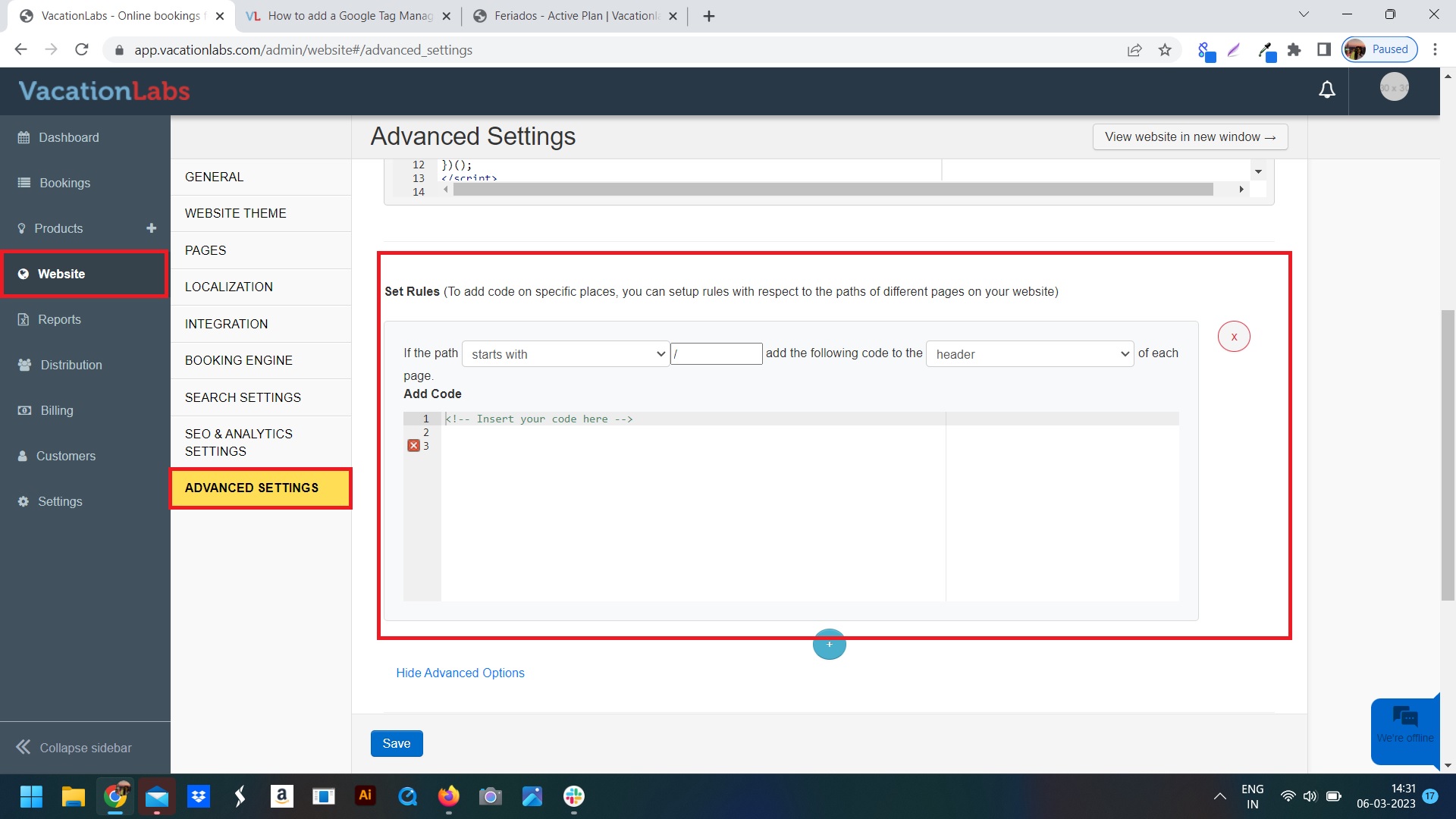 1. Go to Website > Advanced Settings, scroll down till you find the Set Rules section (see screenshot below for reference)