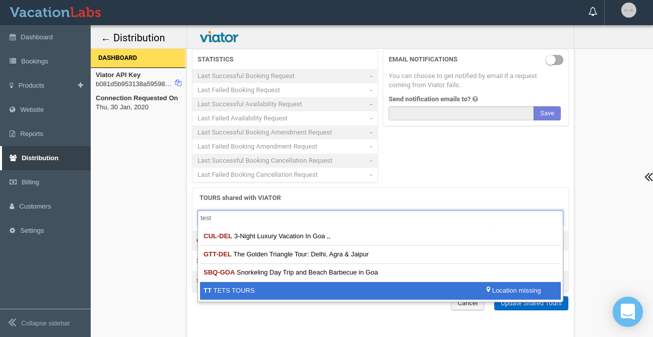 ***Please go through this article for detailed guide on connecting Vacation Labs and Viator
