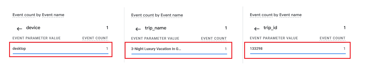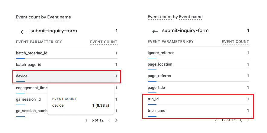 For this, we have taken an example of “trip/popup inquiry-form submission” and “trip/popup inquiry-form viewed” events. Create a custom JavaScript event snippet and add it to the dedicated sections as shown in the screenshot below. The event snippet added to track the inquiry submission is given below: