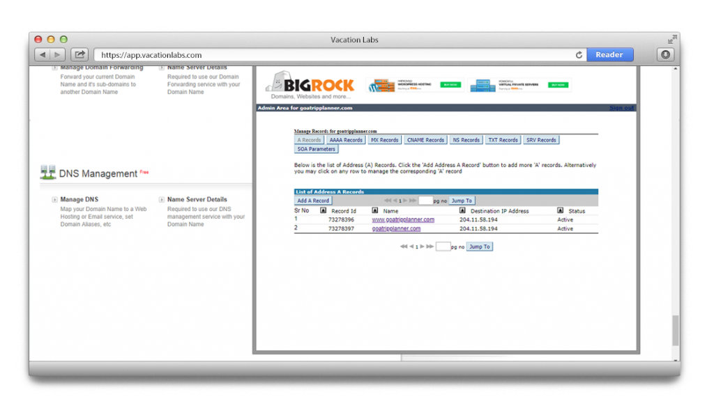 - Once you have made the above mentioned changes the domain host would take at least 48-72 hours to update them and once they are updated you will be able to see your Vacation Labs website on your custom domain.