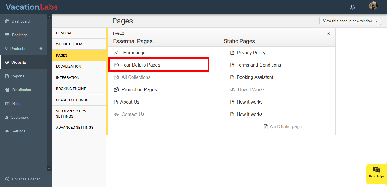 Click on **Tour Details Pag****e