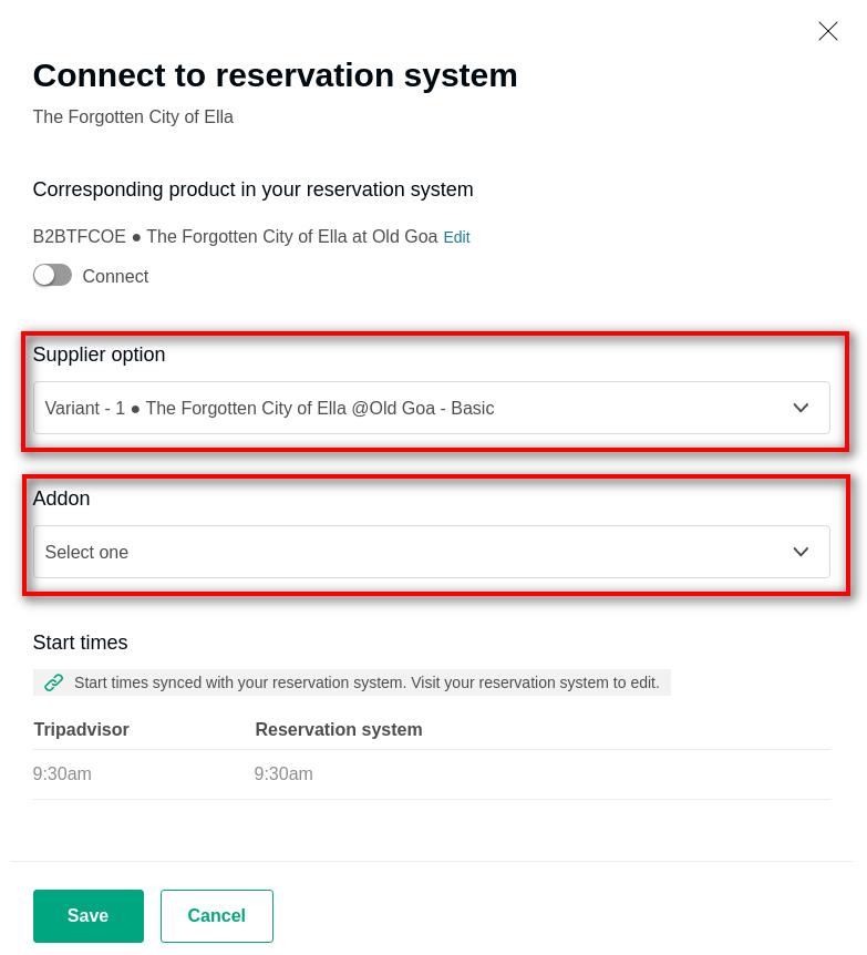- Select the Supplier Variant and Addon (if any) that you would wish to connect with your Vacation Labs Trip.