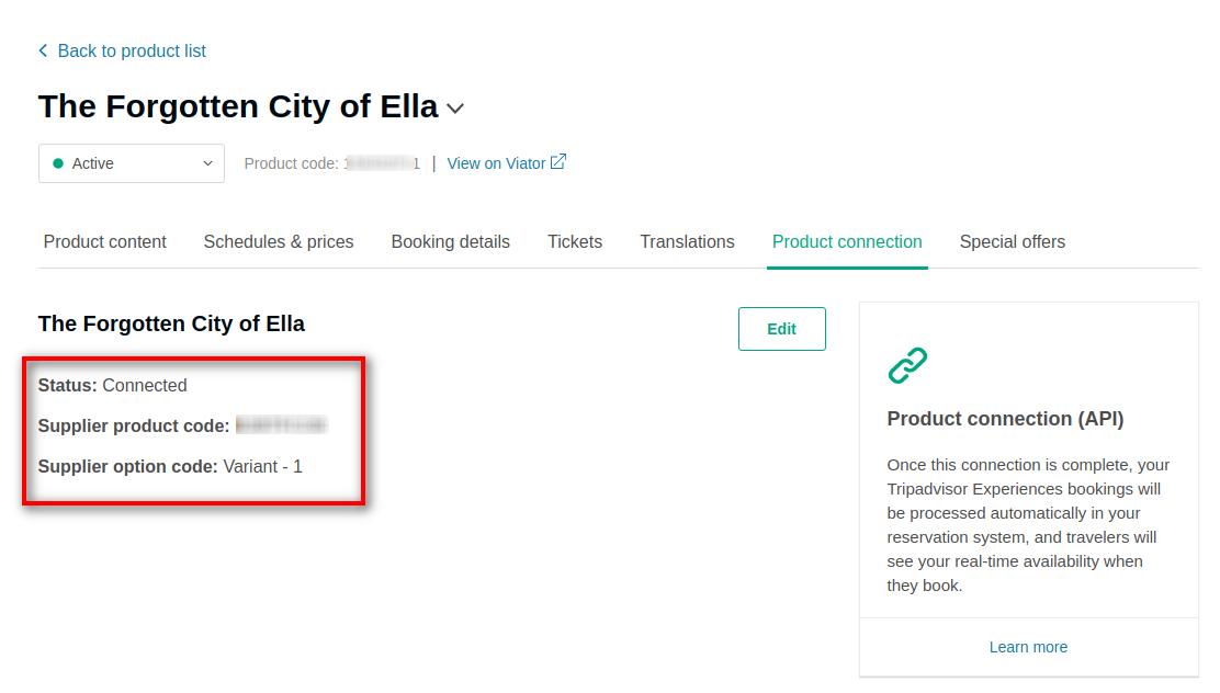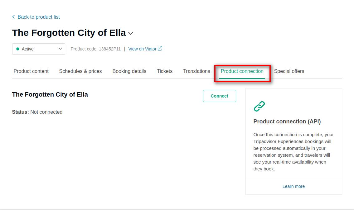 Once connected, we strongly recommend that you reach out to your Viator Account Manager or Vacation Labs Account Manager directly prior to any changes to your product structure. Changing your product structure could possibly break the mapping and cause bookings to fail.