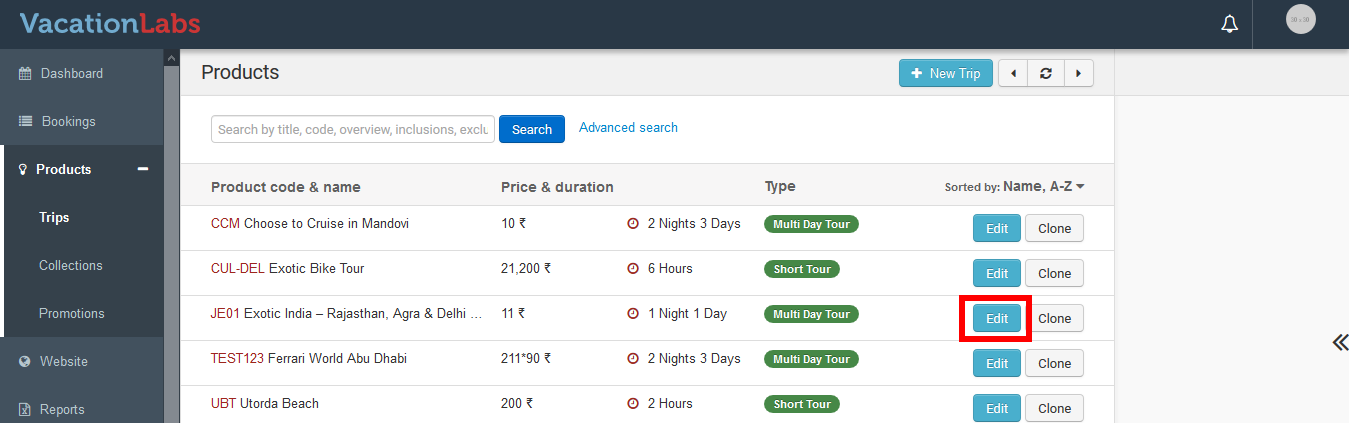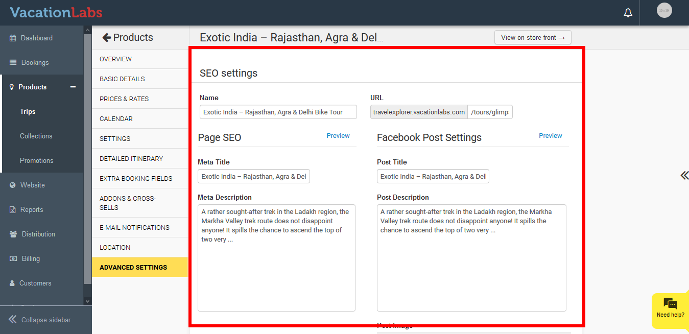 Select the Tour for which the Meta Title & Description need to be modified.