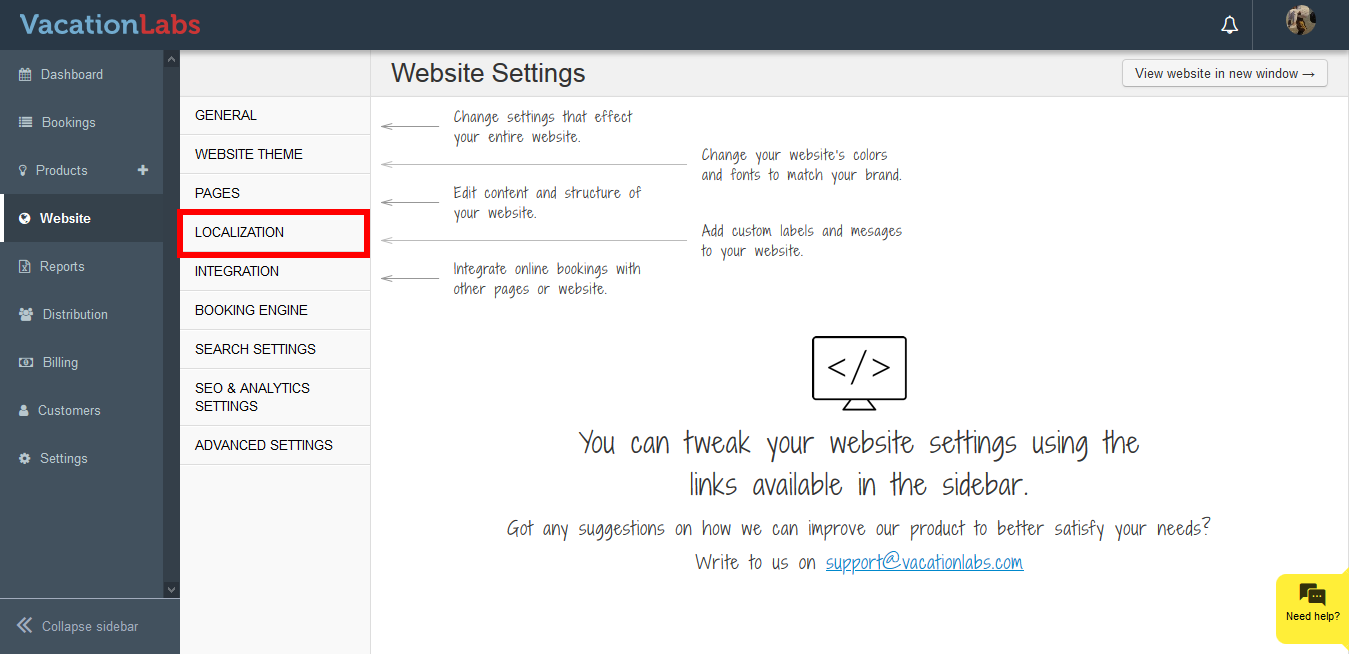 - Click on Localization