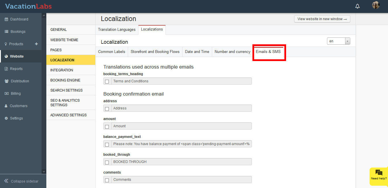 This section allows you to modify the text for the customer facing emails for eg Booking confirmation email, Booking modification email, Skipped Payment link email, Cancellation email, etc.