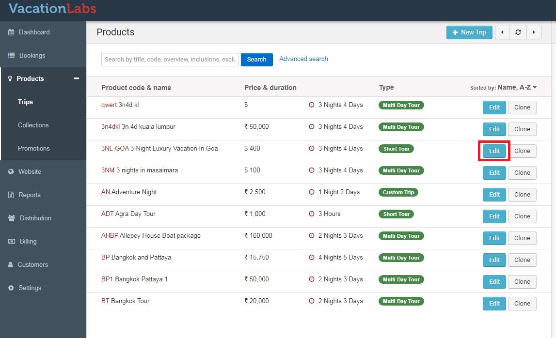 You will see a list of all your trips. Locate the specific trip you need to edit and click its Edit button to open the trip editor.