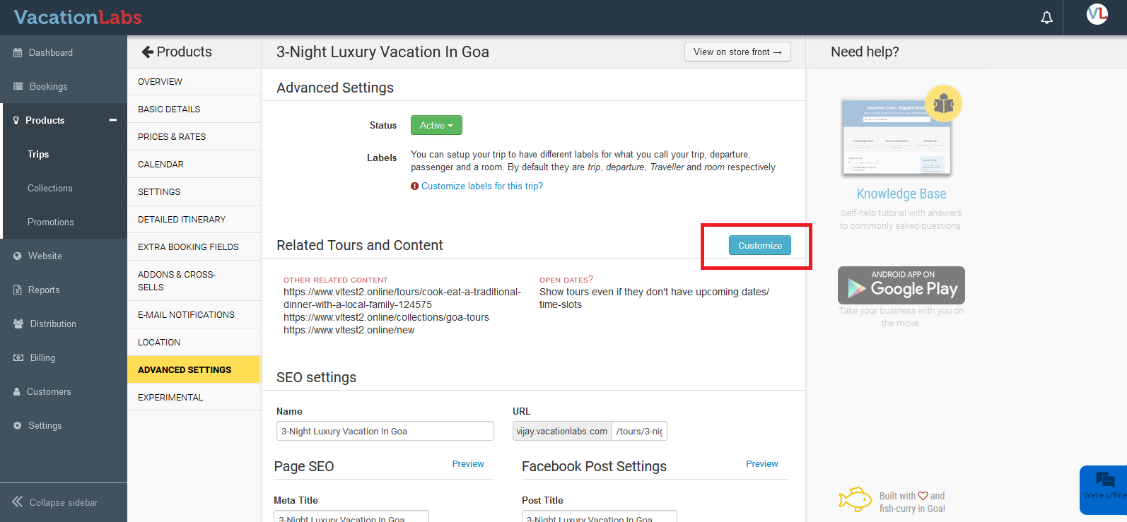 On the tour details page, Vacation Labs provides the flexibility to manage the “related content”. This allows you to customize which “related” tour cards/collection cards/static pages are displayed for each specific tour.