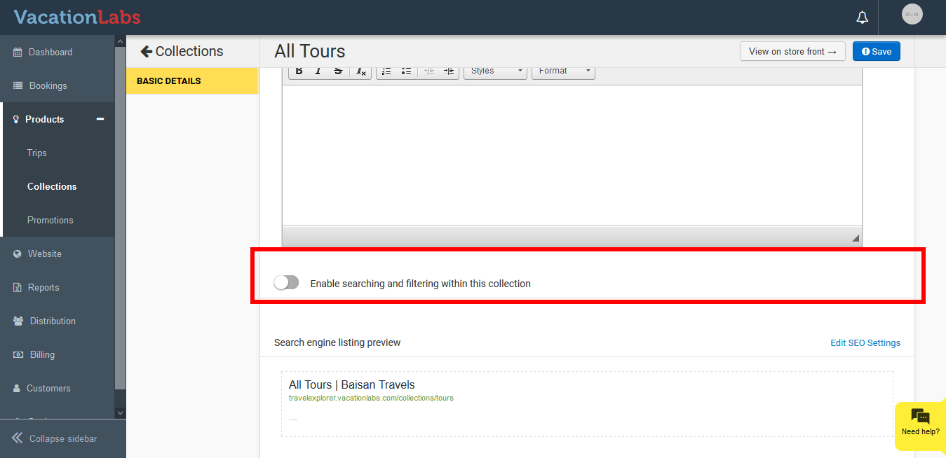 The Advanced Search feature allows you to also enable Search and Filtering within a collection, which means that once a customer lands on a Collection page, you can make it easier for them to find what they are looking for by providing them the option to search and filter their results within that collection.