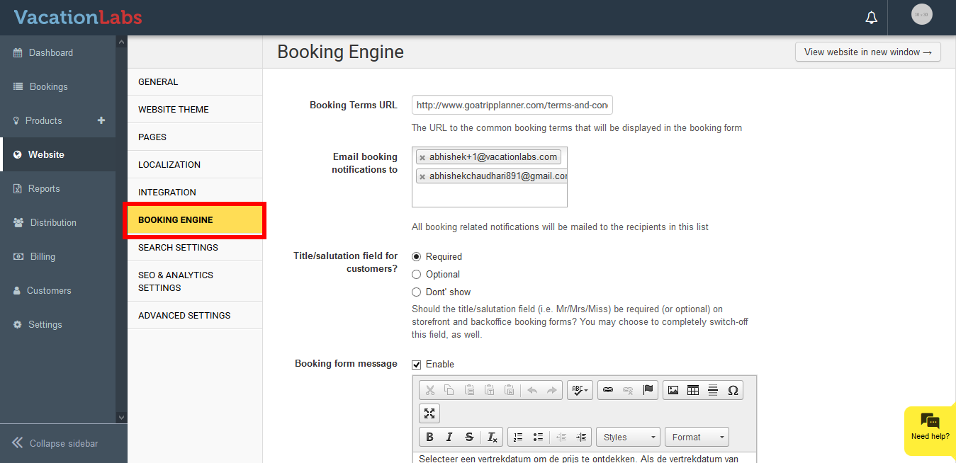 Click on **Booking Engine