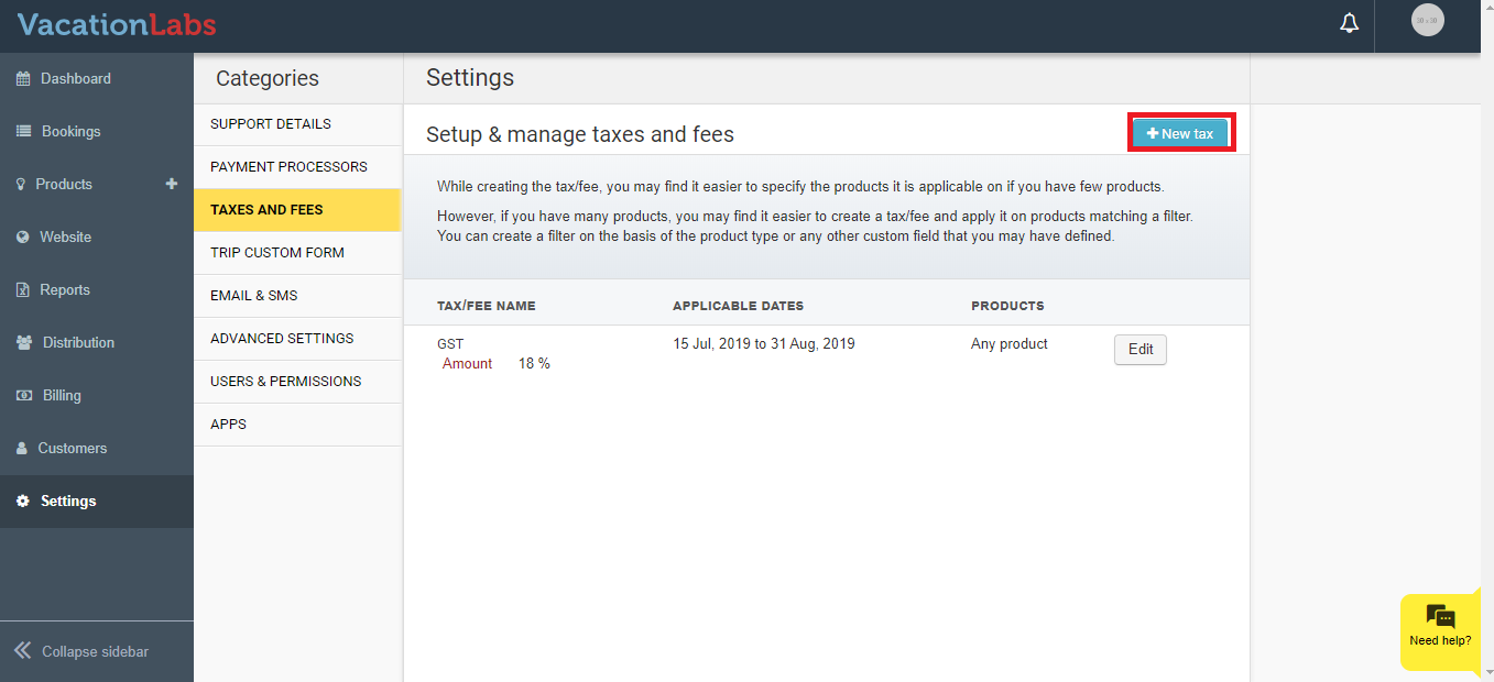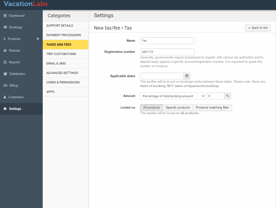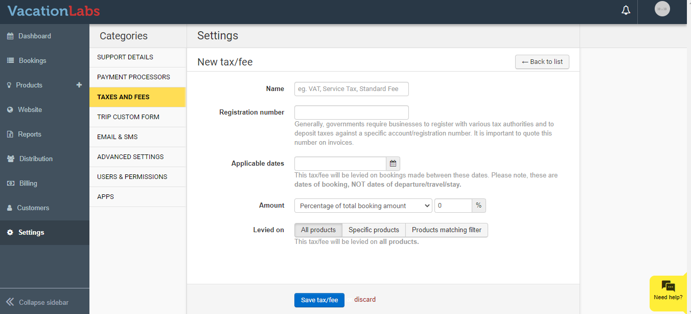 Here’s how you can setup taxes or service fees for your trips in Vacation Labs: