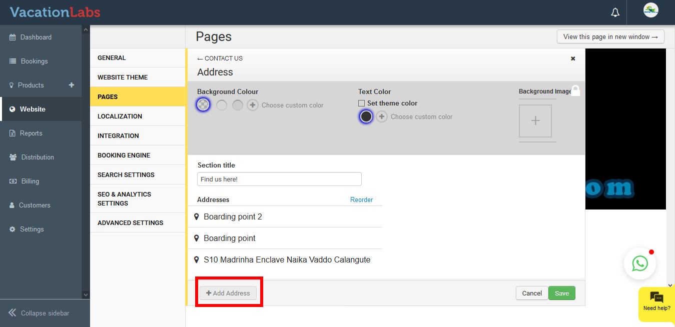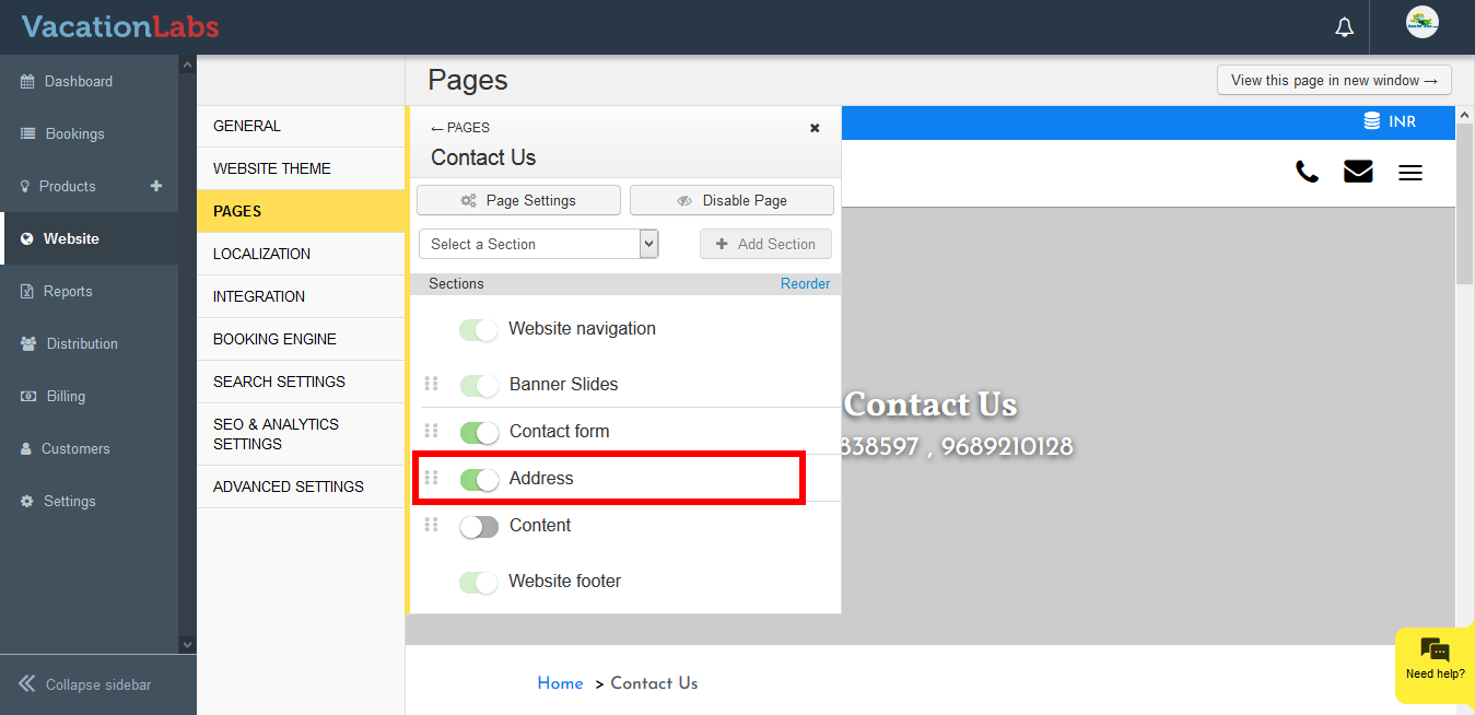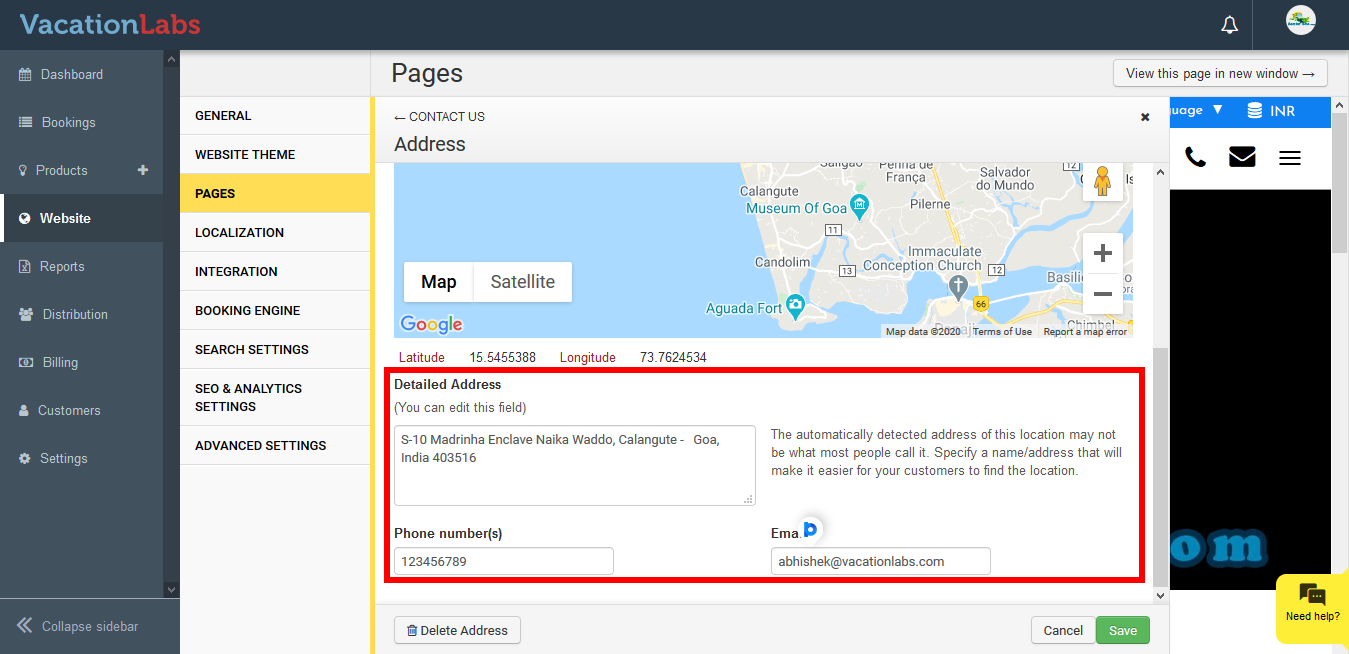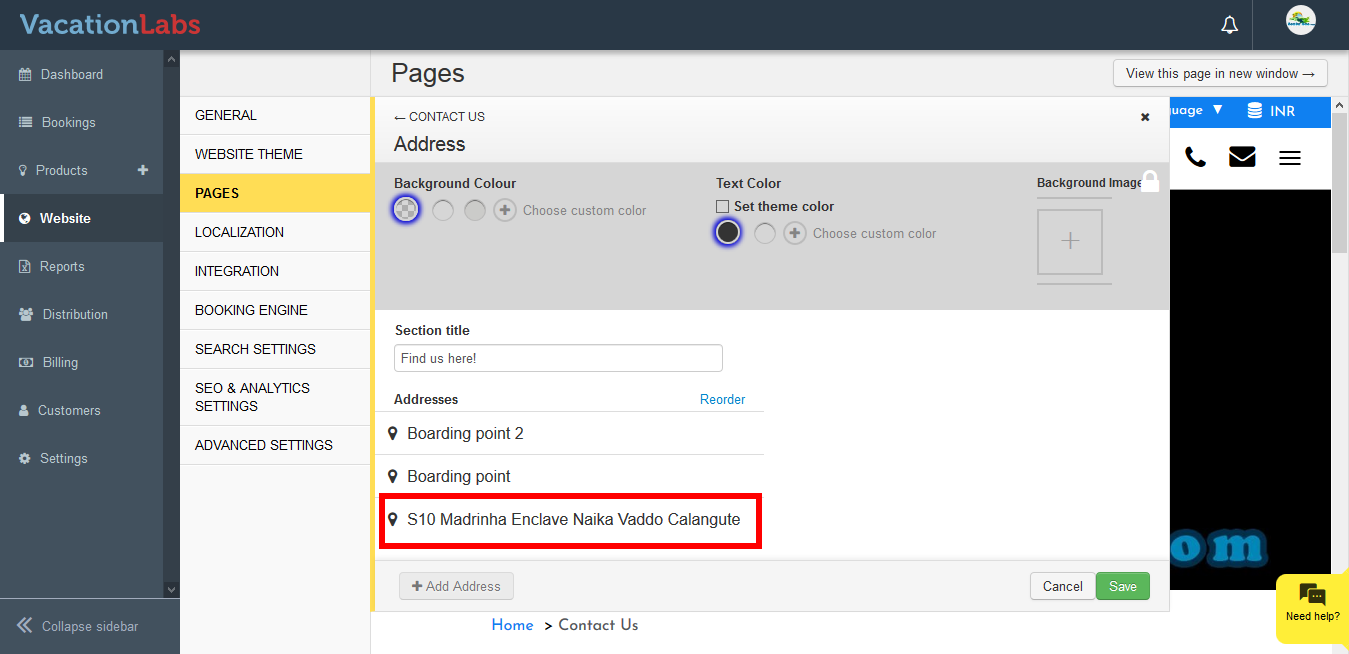 Please follow the below steps to Update address on Contact Us Page.