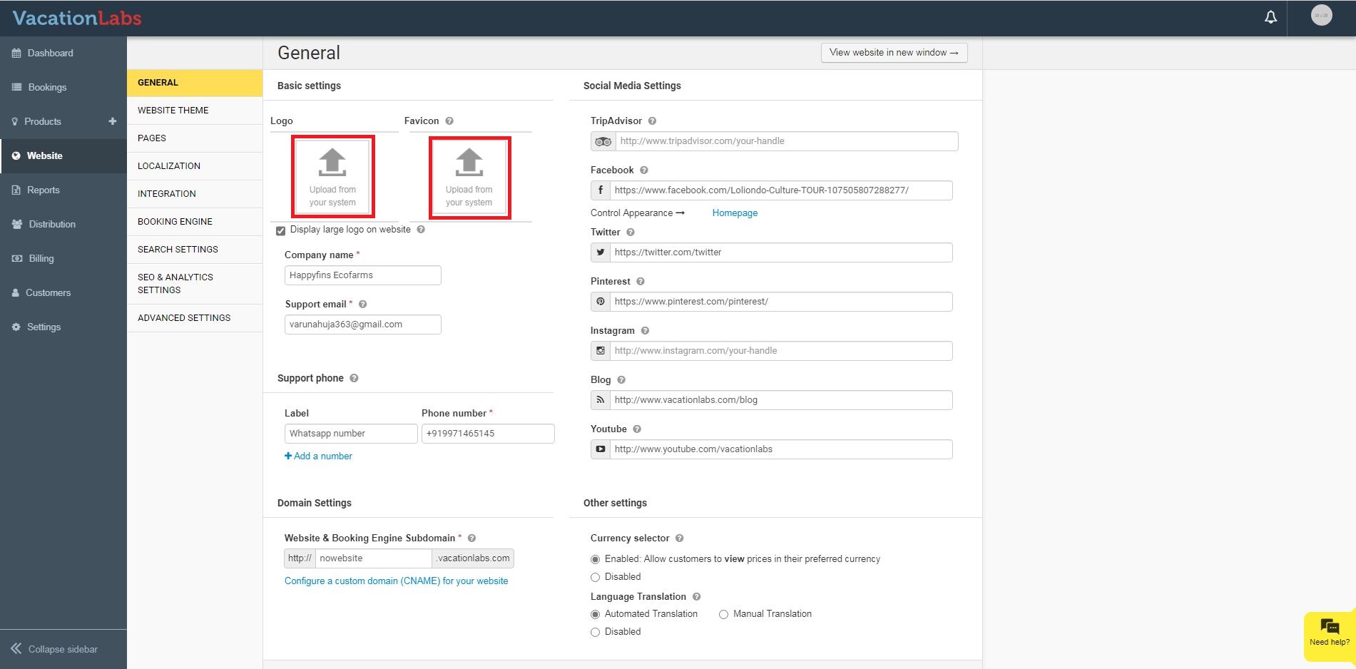 Personalize your website by adding your logo and favicon. These elements help establish your brand identity across your site and in browser tabs.