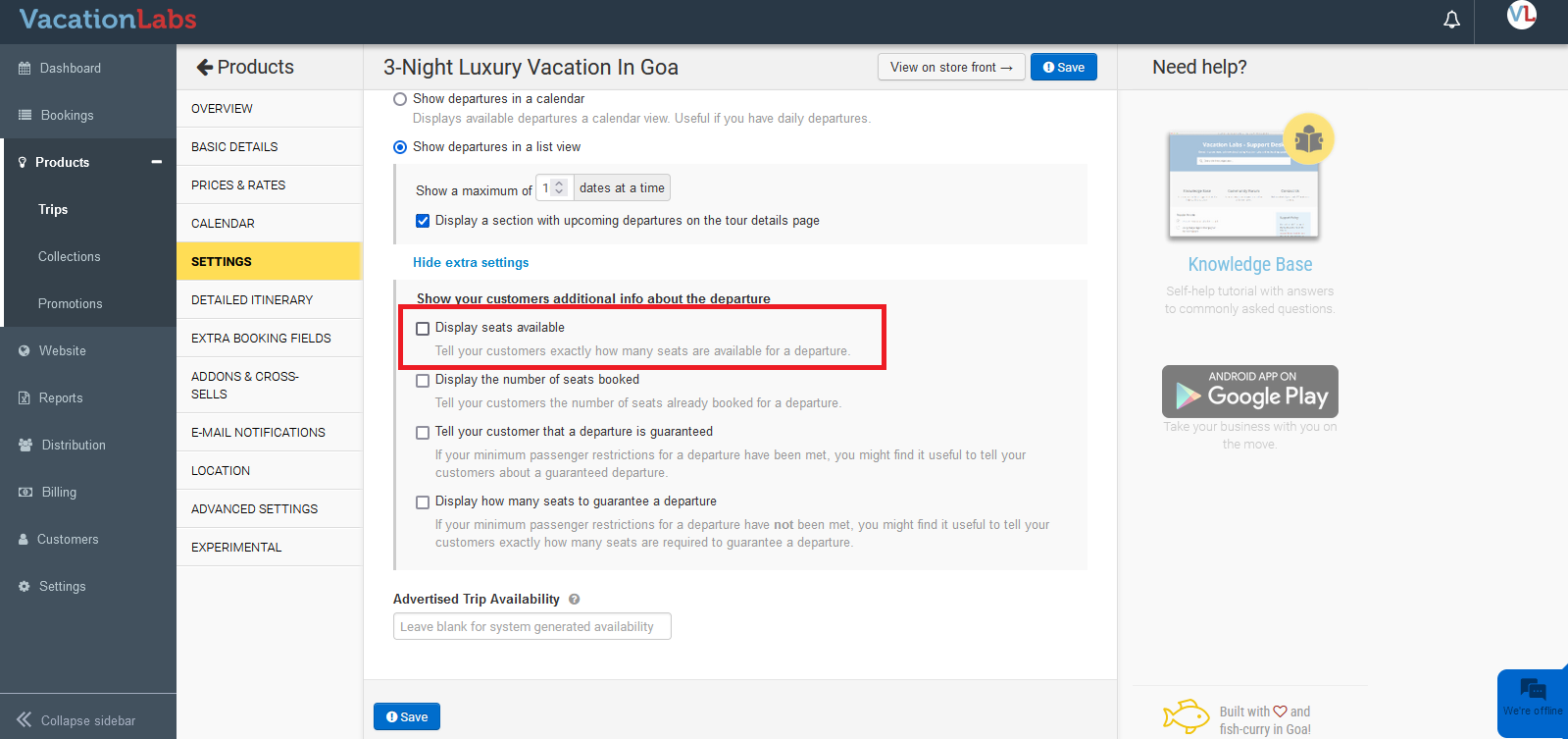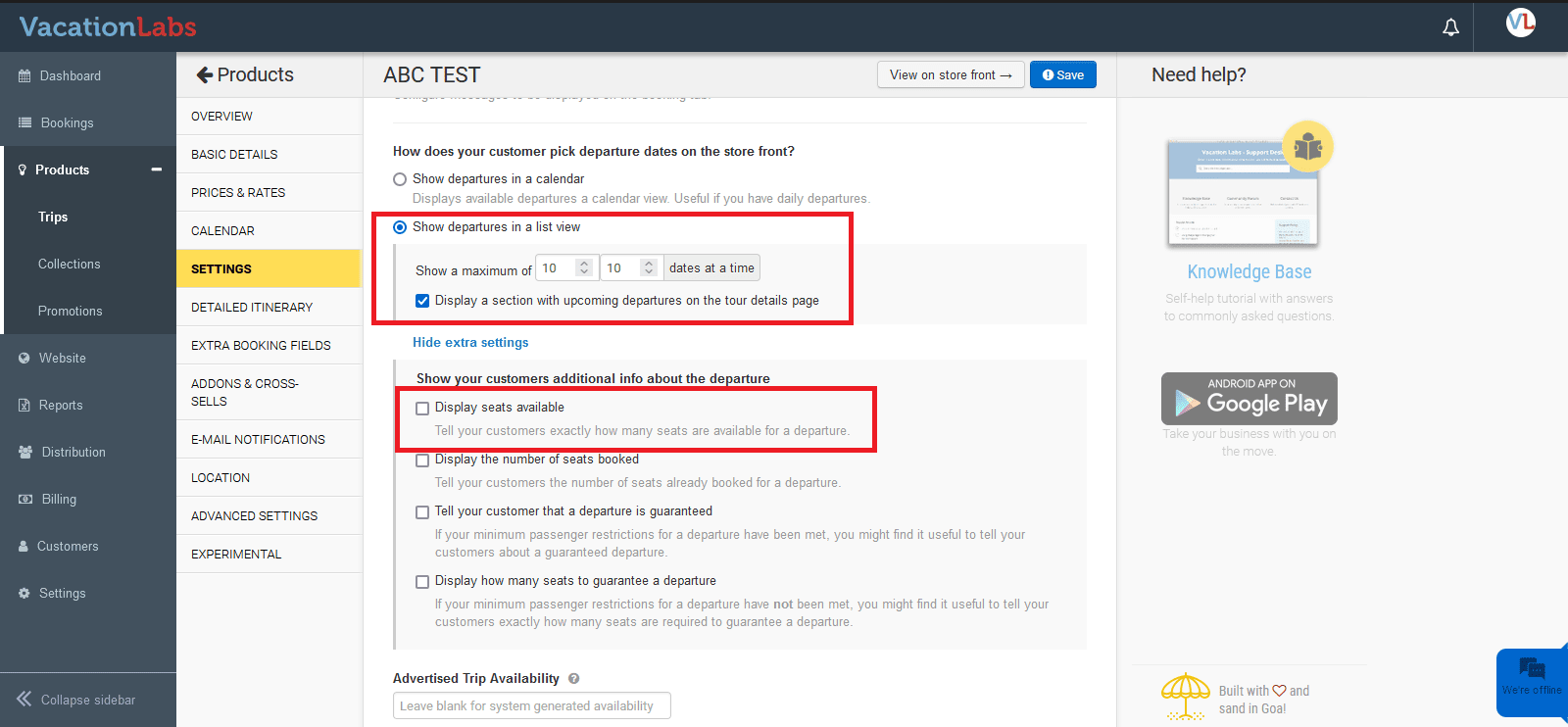 To ensure that Urgency Triggers show-up on your booking form, navigate to Products > Trips > Edit the trip > Settings > How does your customer pick departure dates on the storefront? Here, select the “Show departures in a list view” option.