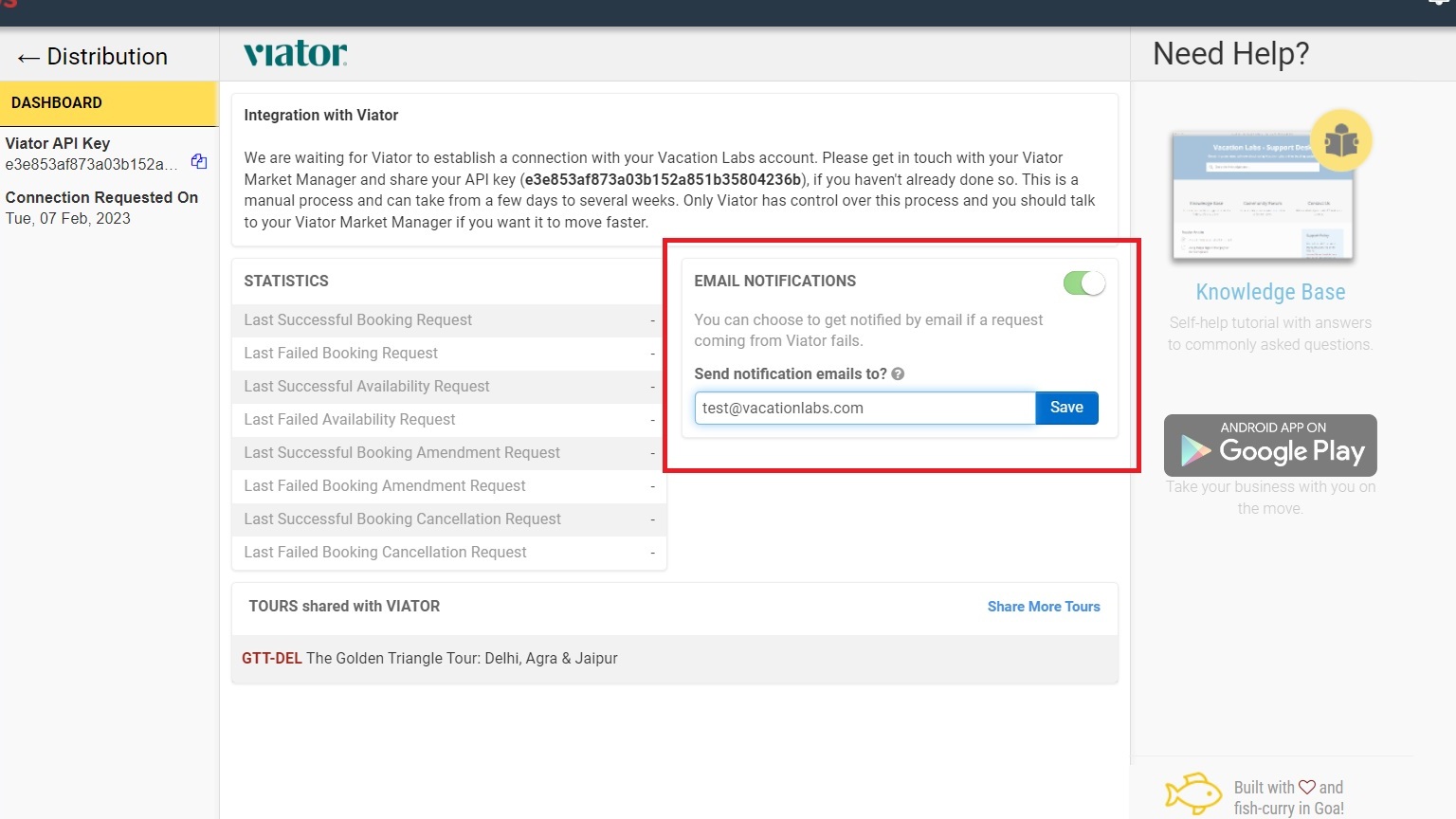 It is strongly recommended that you enable error notifications for Viator API calls. If something is not working right win the Viator <=> Vacation Labs integration / sync, you will be notified at most once every 24 hours via email