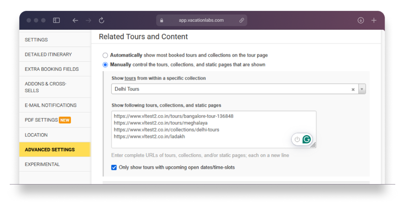 You can now fully customize what appears under the Related Tours section on each tour details page. This section appears on the right side of the tour page under the “Explore more” area and lets you decide what tours, collections, or static pages are promoted alongside your main content.