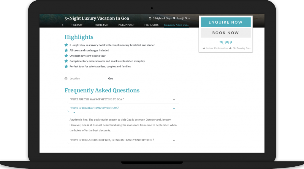 Apart from microformats, which are visible only to search-engines, we’ve also upgraded all our travel website templates to show breadcrumbs that are visible to end-users. This usually helps users in navigating your website easily. It also helps in the discovery of related content. For example, if a user lands directly on the tour page of “Chadar trek” after searching on Google, the breadcrumbs help in discovery of the “Himalayan treks” collection.
